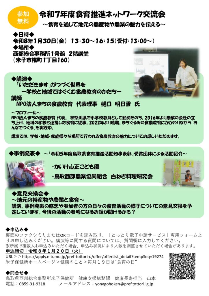 鳥取県米子市で開かれる「令和7年度食育推進ネットワーク交流会」で、食農教育についてお話しさせてもらいます。